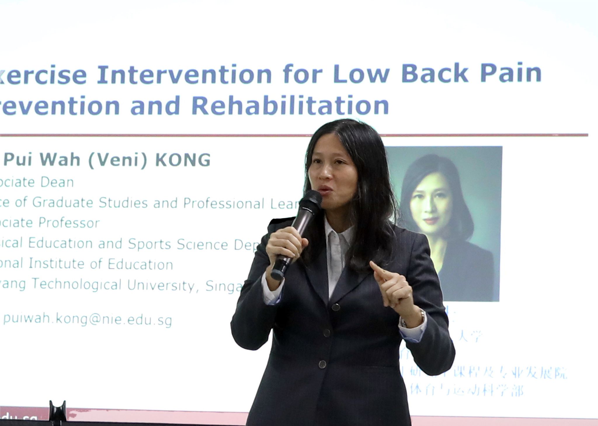 2024年10月18日上午,公司邀请新加坡南洋理工大学国立教育学院副经理KONG PuiWah教授做了题为“Exercise Interventions for Low Back Pain Prevention and Rehabilitation”的学术报告,本次学术报告由李海伟教授和刘晓旭博士主持,部分教师和全体研究生聆听报告会。